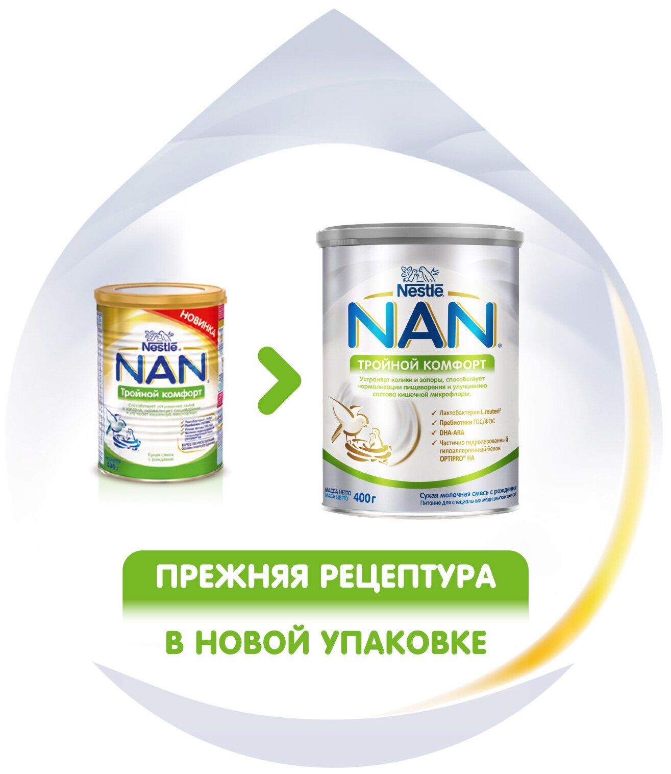 Смесь NAN (Nestlé) Тройной комфорт, с рождения, 400 г, 400 мл