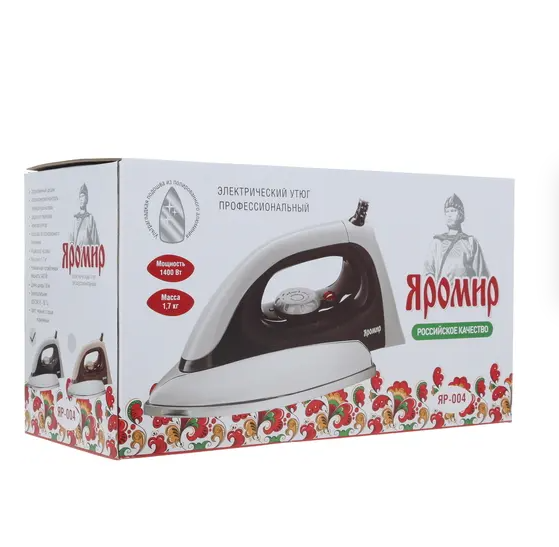 Утюг яромир ЯР-004 коричневый : 1400 Вт, алюминиевая подошва, вес 1,7кг