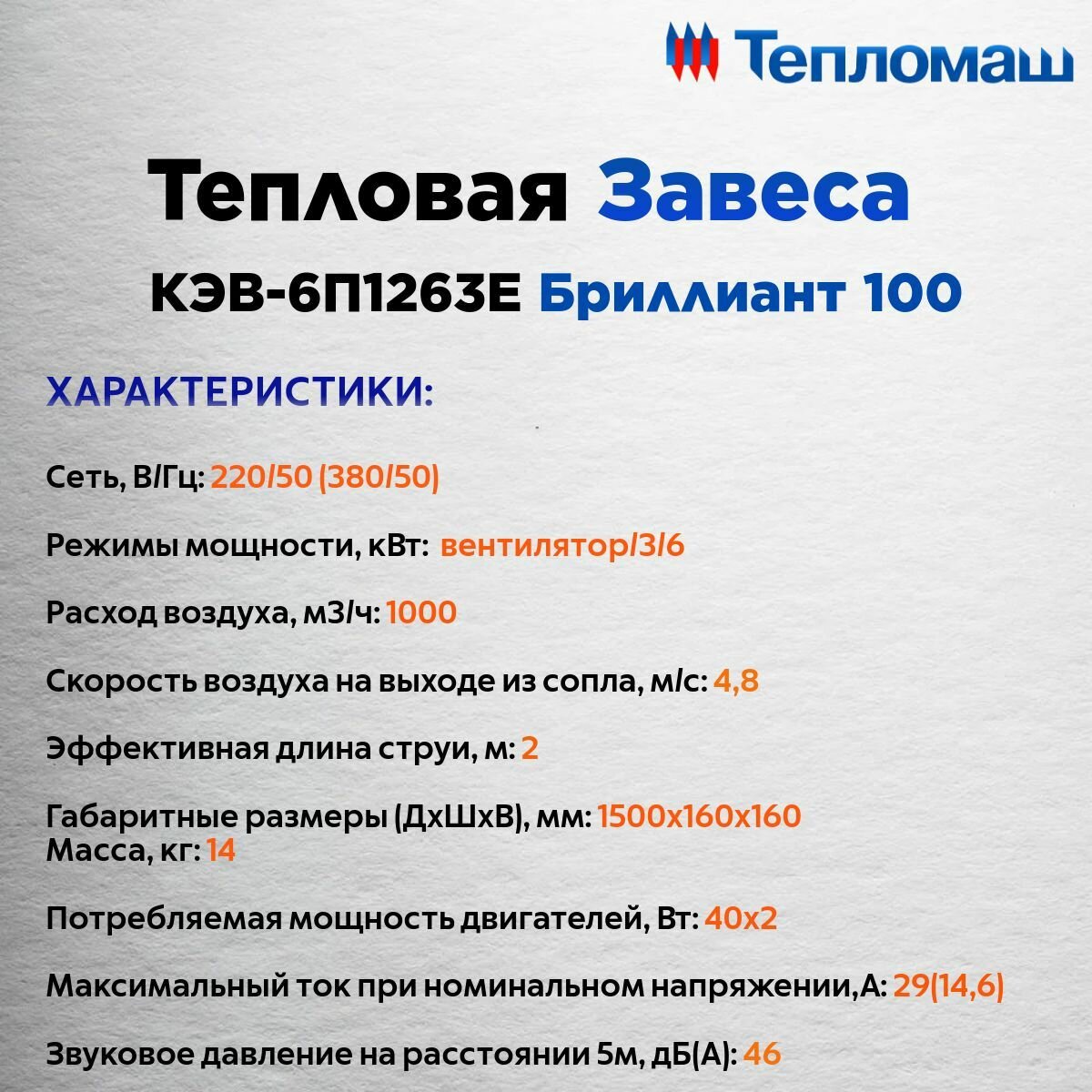 Тепловая завеса Тепломаш КЭВ-6П1263E, Бриллиант, струя 2 м, 6 кВт интересное: