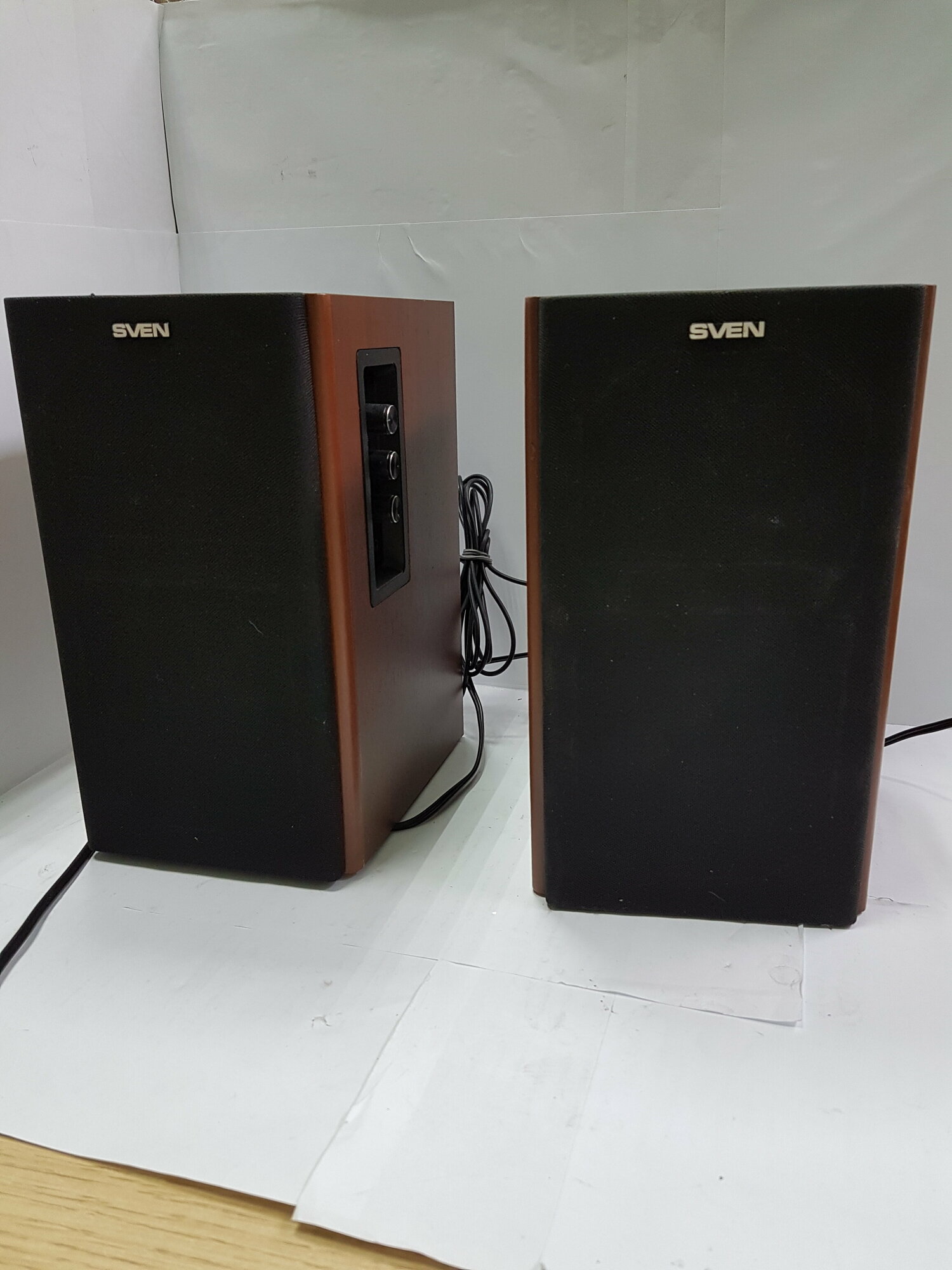 | Минусы: | Экономика должна быть экономной, потому что бы поставить эти колонки на привычное место, где раньше стояли тоже свены, но поменьше, потребовалось поставить удлинитель как для питания, так и на аудио-кабель. Уж больно они короткими стали, скоро будут по 0,5 метра лепить. Насчет жутких фонов - они в основном при подключении наушников, те аж гудят, в принципе терпимо, но не приятно. |