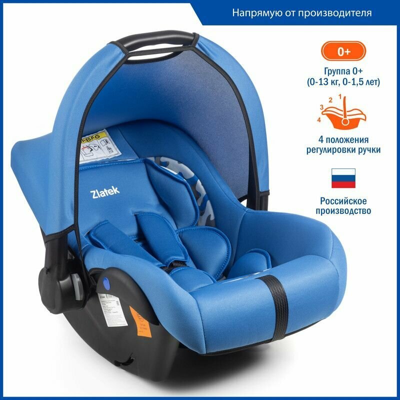 Автокресло детское, автолюлька для новорожденных Zlatek Colibri Люкс от 0 до 13 кг, индиго
