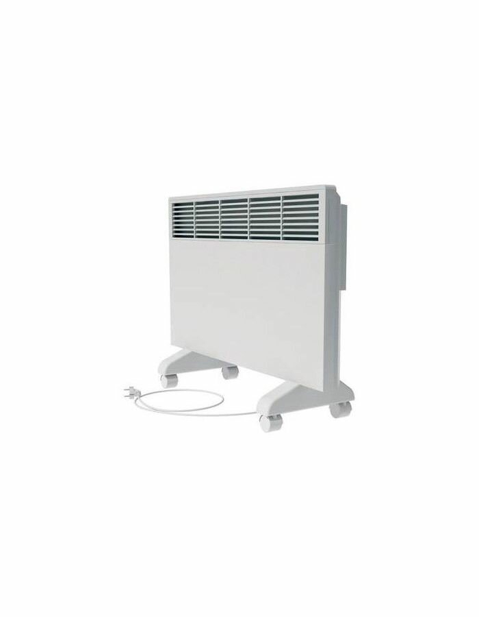 Конвектор оснащён термостатом. В комплекте есть ножки с колёсиками. Температуру работы можно регулировать вручную. Его можно вешать на стену.
