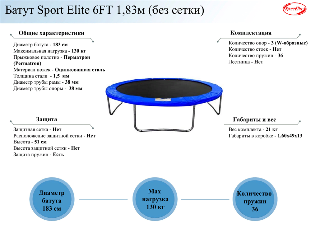 батут SportElite 6FT 1,83м (без сетки) . интересное: