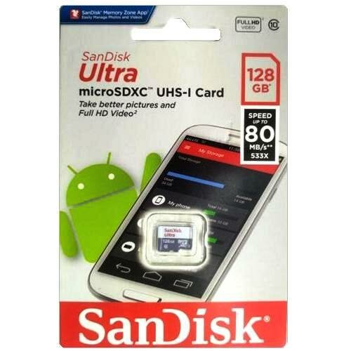Купить Карта памяти SanDisk microSDXC 128 ГБ Class 10, UHS-I, R 80 МБ/с