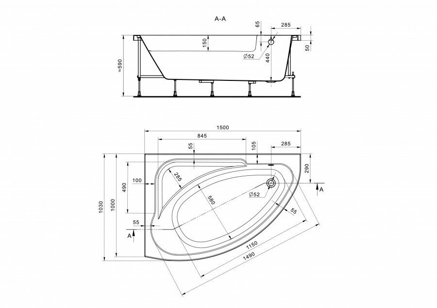 Акриловая ванна Santek Гоа 150 R без гидромассажа R