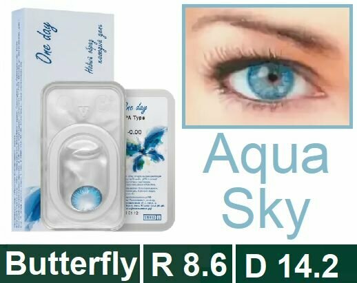 СохранитьГолубые Офтальмикс Butterfly One Day -1.00, 14.2, 8.6, 2 тона - подходят для светлых и тёмных оттенков глаз. Количество линз - 2 штуки. Sky Blue(голубой) контактные цветные линзы цвета скай блю. Срок ношения - 1 день интересное: