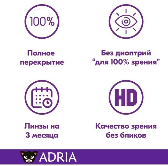 Контактные линзы цветные ADRIA, Adria Crazy, Квартальные, RED CAT, -0,00 / 14 / 8,6 / 1 шт.