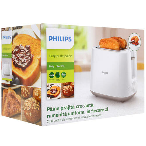 Тостер Philips 830 Вт, 8 настроек, 2, белый