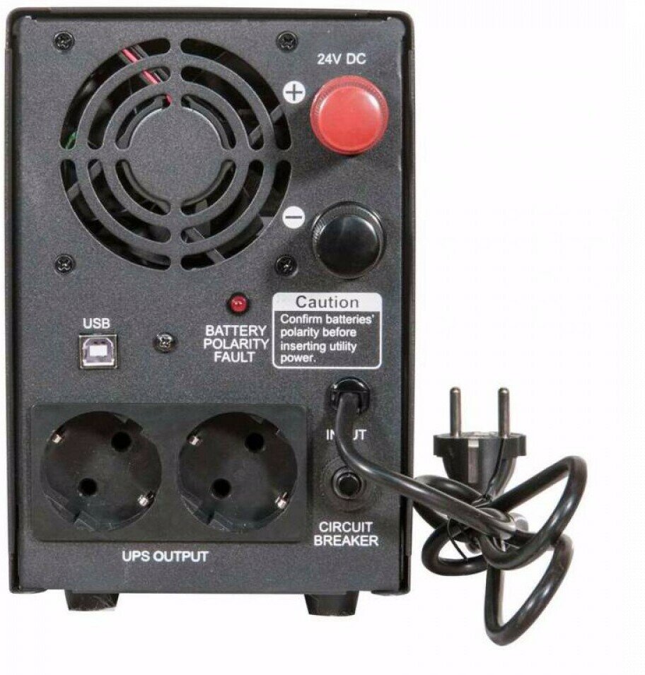 | Плюсы: | 280 вольт - до стольки возможно входное напряжение. Подключение внешних стандартных аккумуляторов с помощью клемм. Толковое количество нужной информации на дисплее. Подключение любого оборудование со стандартной евро-вилкой. Активное охлаждение на задней стенке. |