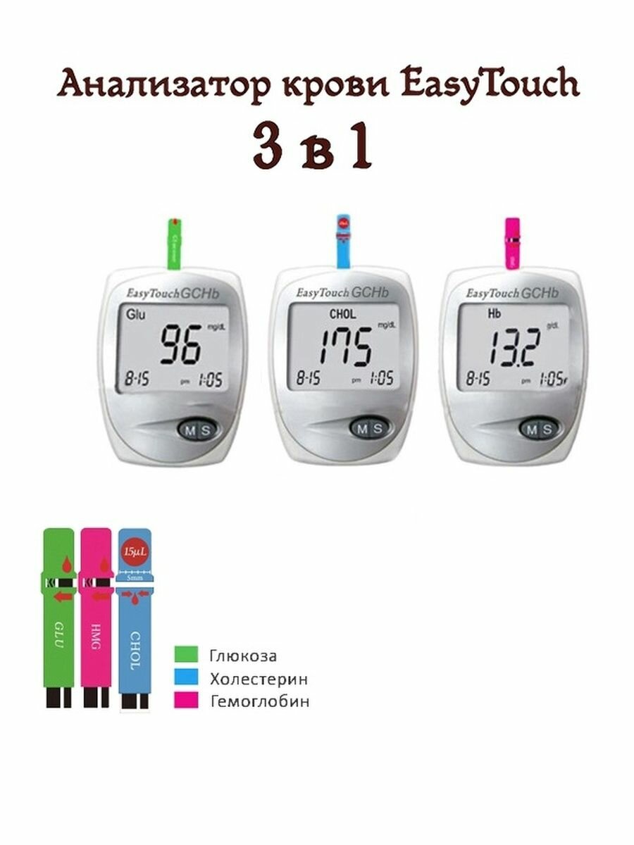 Анализатор глюкозы, холестерина, гемеглобина в крови Изи Тач (EasyTouch) GCHb 3 в 1