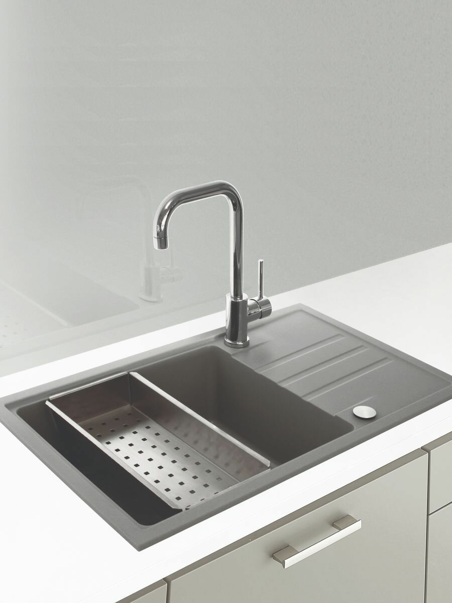 Кухонная мойка Alveus INTERMEZZO 130 CONCRETE-G81 780X480X200. Оборачиваемая универсальная мойка для кухни + сифон в комплекте