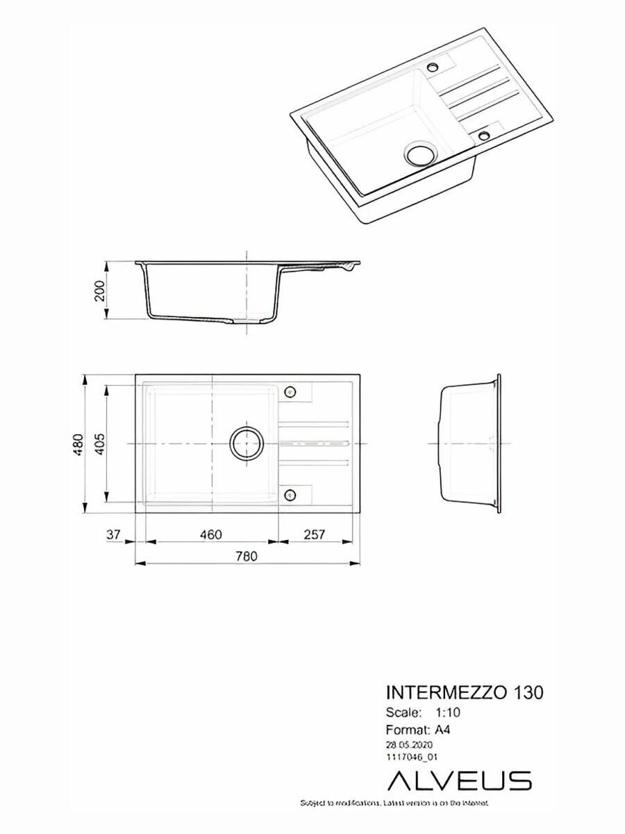 ALVEUS мойка INTERMEZZO 130 GRANITAL CARBON - G91 780X480X200 1X в компл.с сифоном 111729
