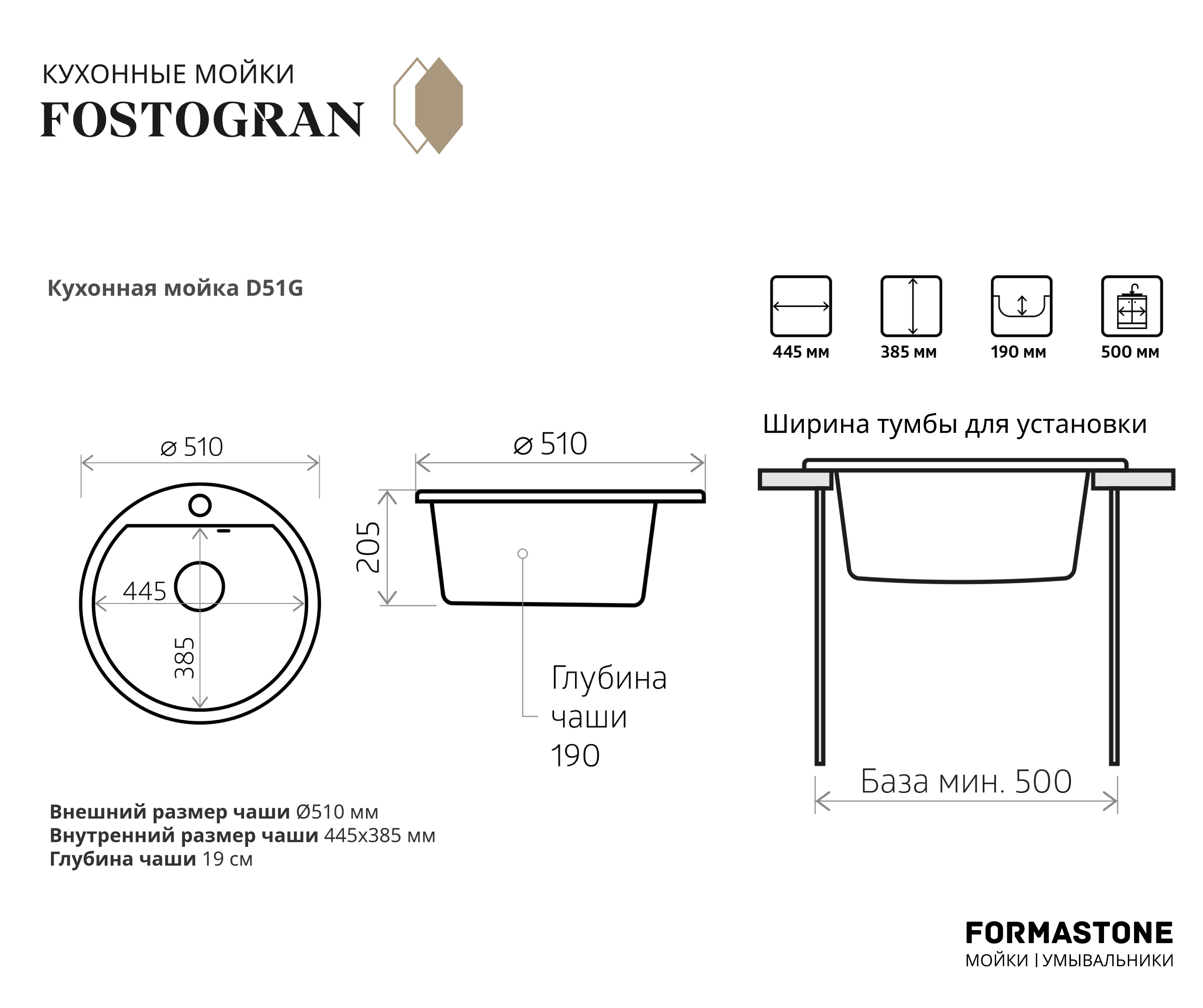 Мойка для кухни гранитная FОSТО FGD 51G (404 антрацит)