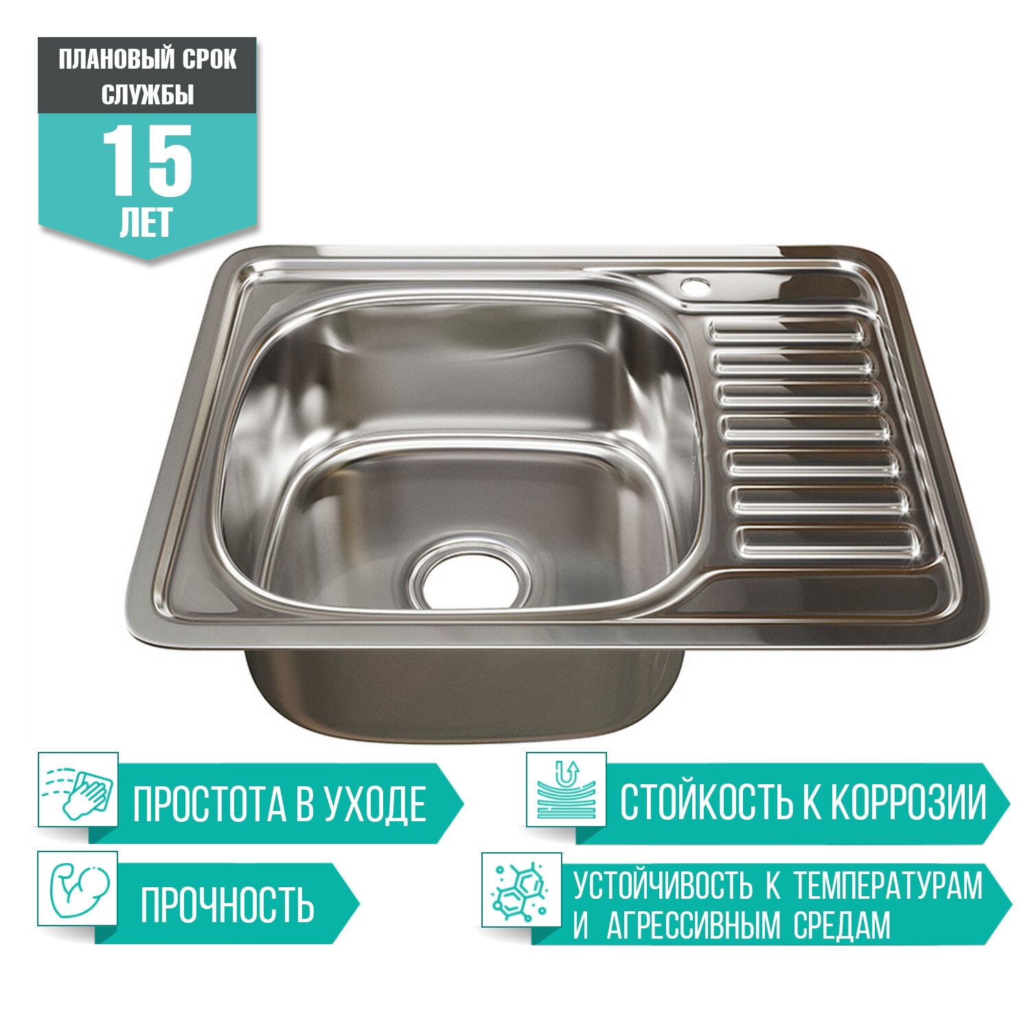 Врезная кухонная мойка Mixline из нержавеющей стали прямоугольная 48х58 см выпуск 3 1/2 глубина 16 см, крыло правое