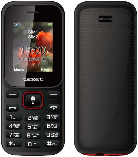 Мобильный телефон teXet ТМ-128 цвет черный-красный