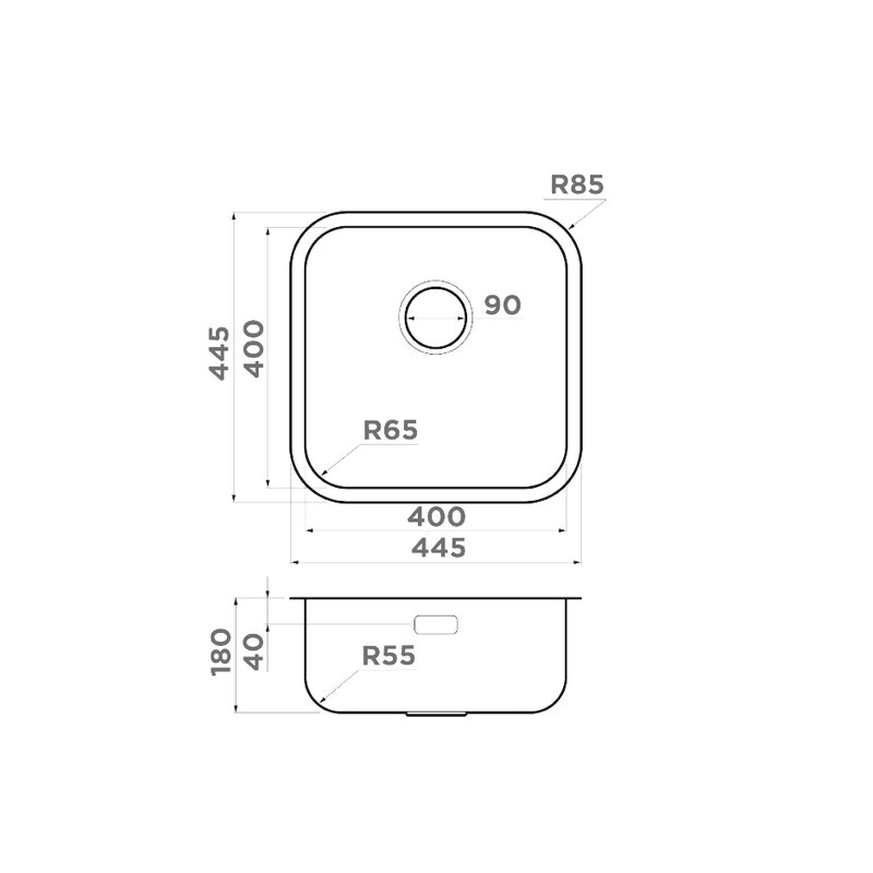 Кухонная мойка OMOIKIRI Omi 44-U/I Quadro IN (445 x 445 мм), врезная/вровень/подстольная, нержавеющая сталь Omoikiri 4993494