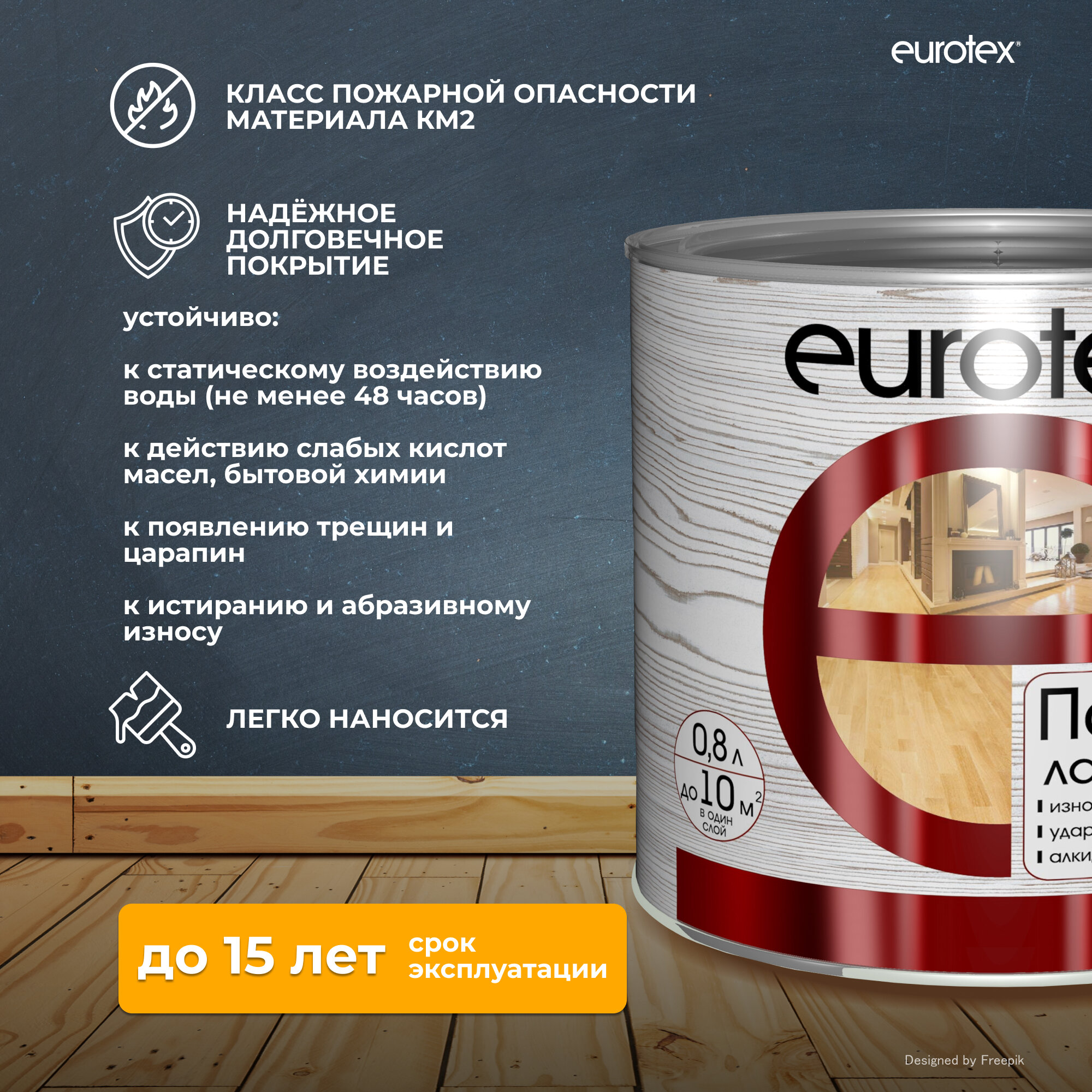 Лак паркетный Eurotex Premium, алкидно-уретановый, полуматовый, 0,8 л