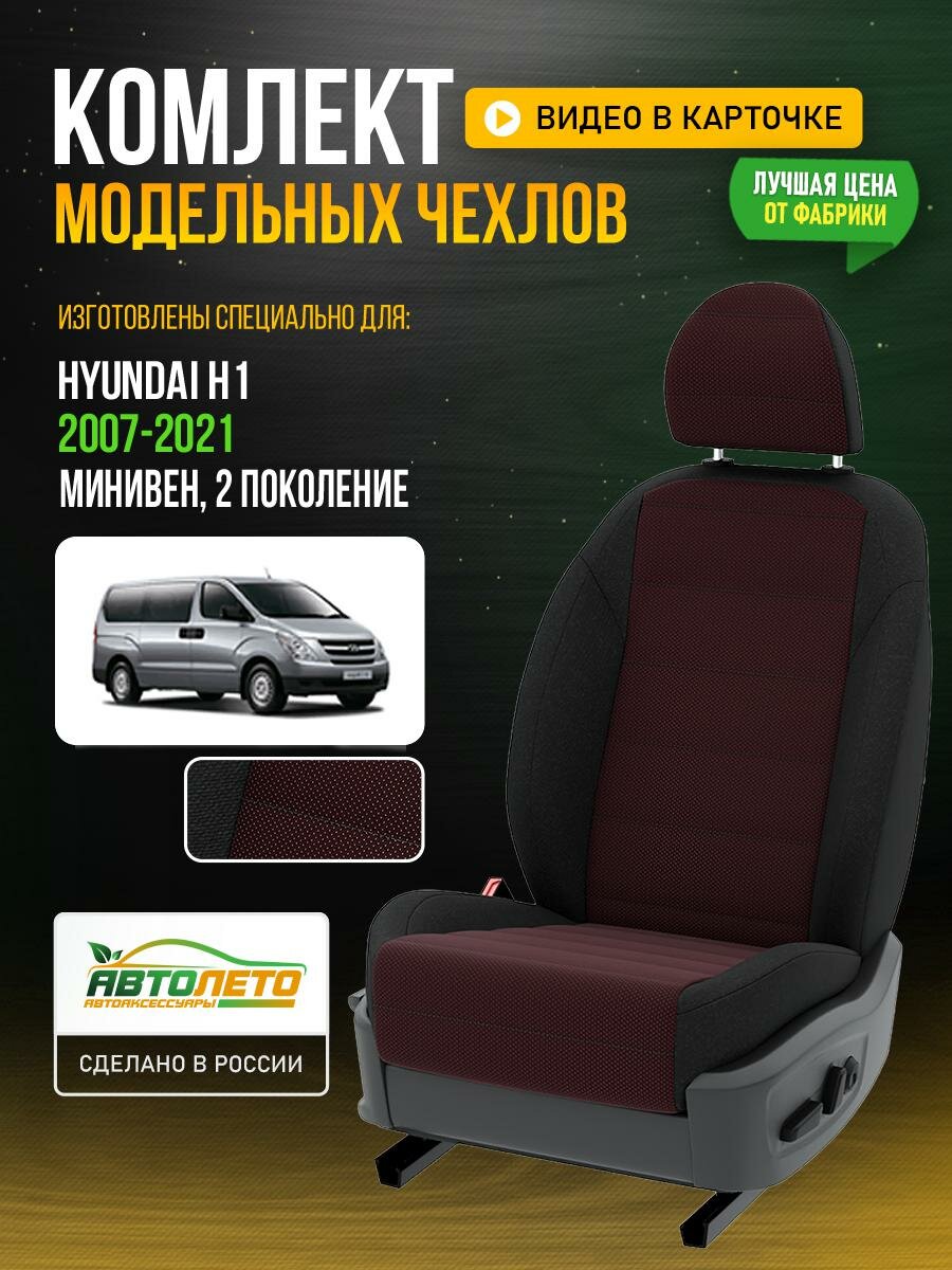 Чехлы для Hyundai H1 2 2007-2021 Красный Черный Жаккард Авто Лето LA699C46 интересное: