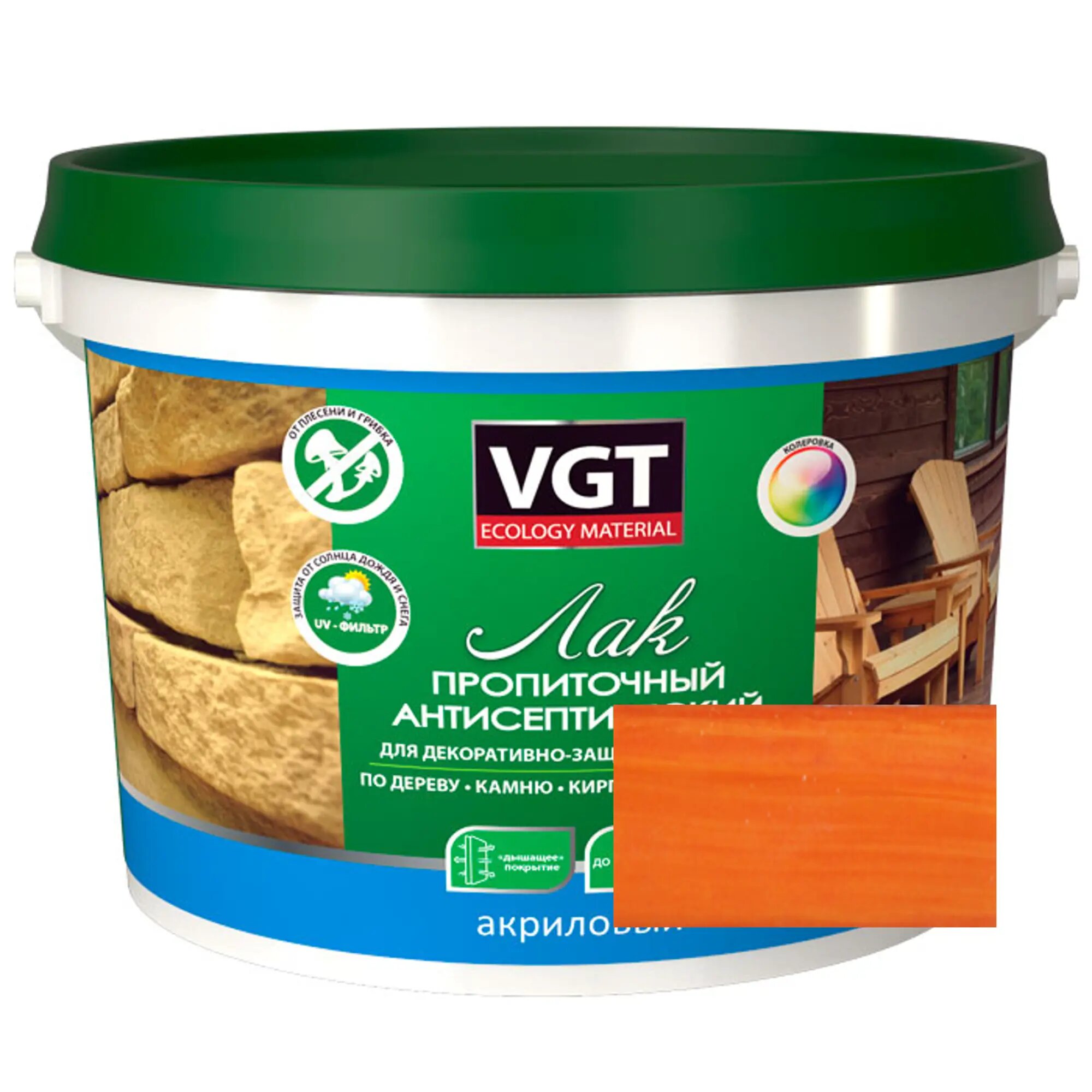 Лак акриловый пропиточный антисептический для дерева и камня VGT (9кг) тик