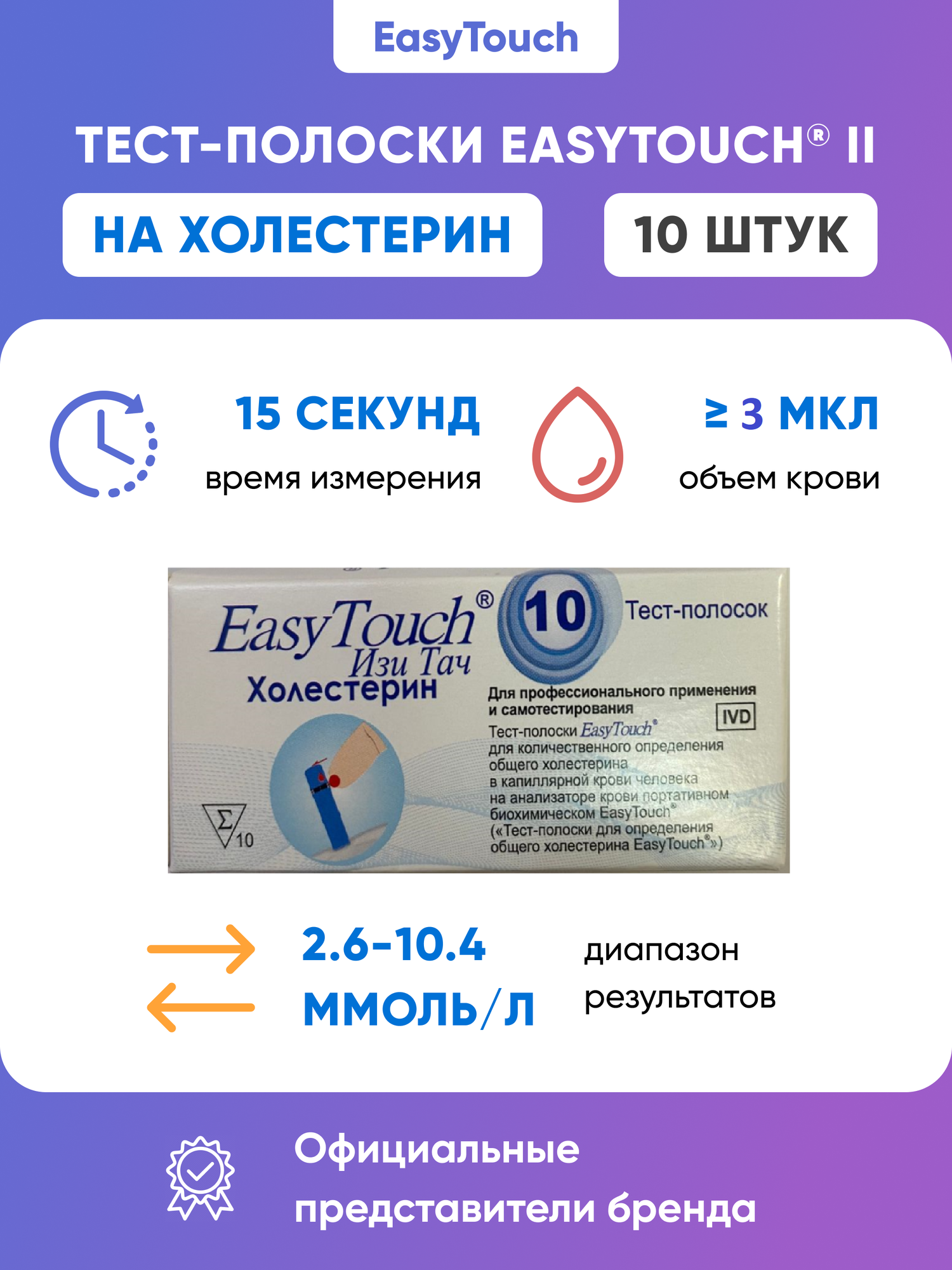 Тест-полоски для определения холестерина в крови EasyTouch (Изи Тач), 10шт.