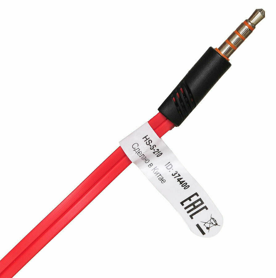Наушники-гарнитура OKLICK D1R красные, с плоским кабелем и подключением 3.5 мм
