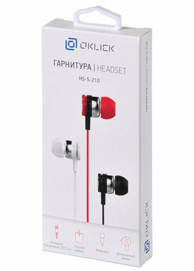 Гарнитура Oklick HS-S-210, 3.5 мм, вкладыши, черный [d1b]