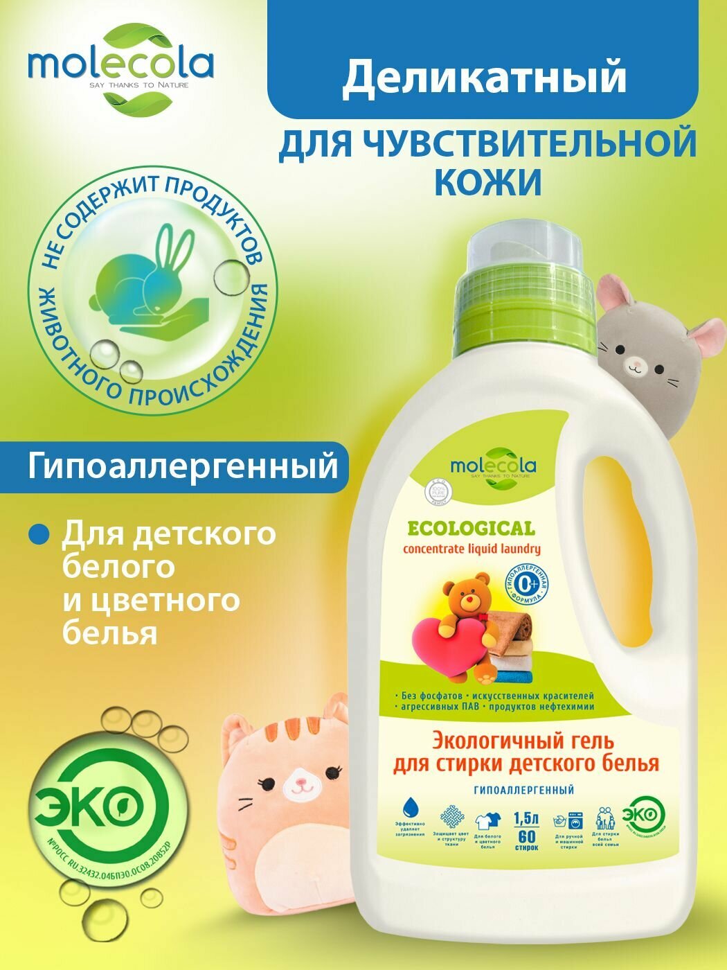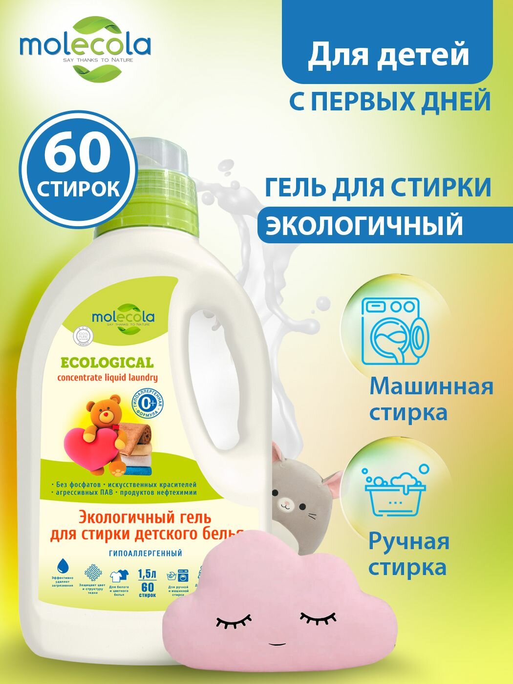 Гель MOLECOLA для стирки детского белья для чувствительной кожи экологический 1500 мл