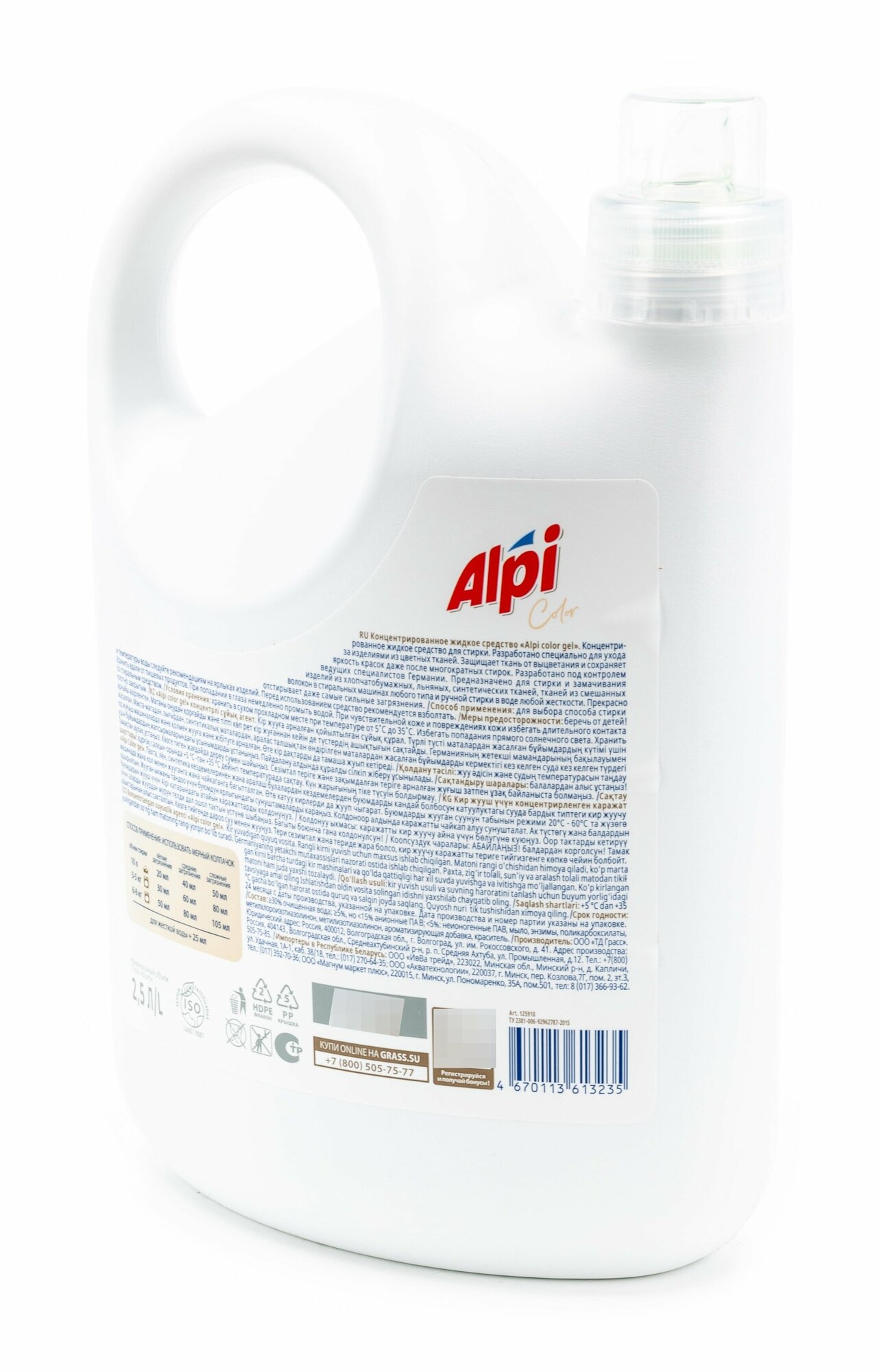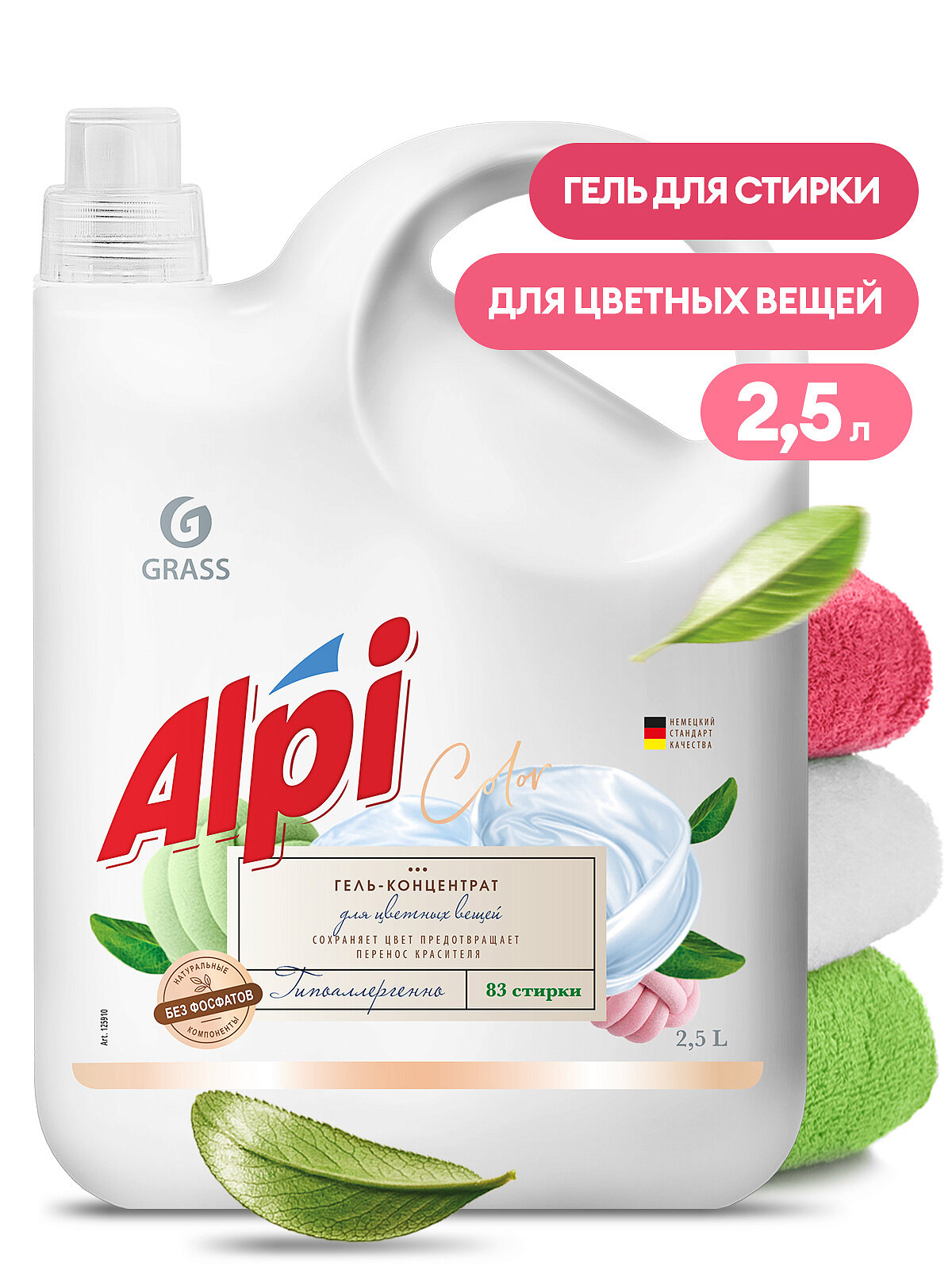 Гель для стирки цветных тканей Grass / Грасс Alpi жидкий концентрат гипоаллергенный без фосфатов в бутылке с флаконом 2.5л / средство для белья