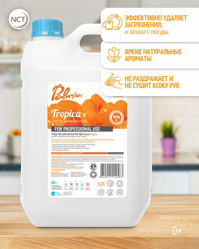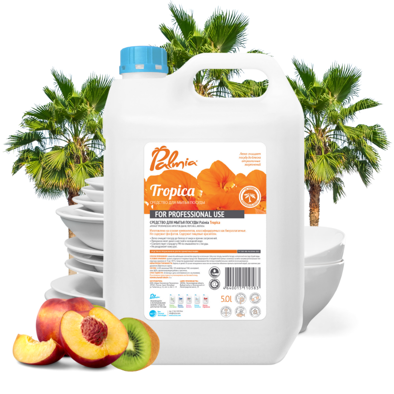 Гель для мытья посуды Palmia "Tropica" с ароматом тропических фруктов, 5 л, канистра