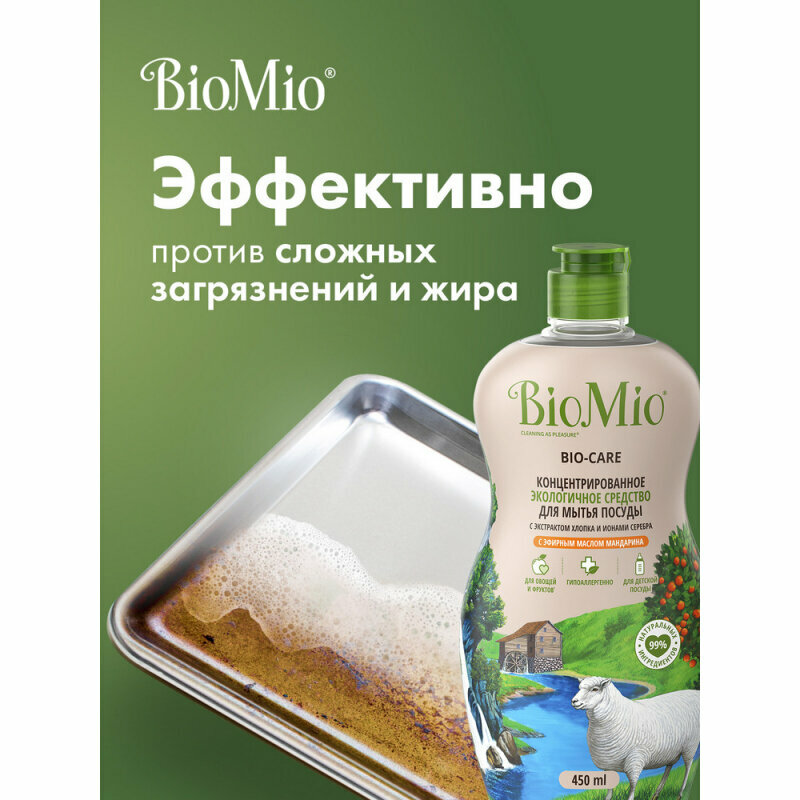 Средство для мытья посуды, овощей и фруктов BioMio Bio-Care с эфирным маслом мандарина, гипоаллергенное, экологичное, 450 мл