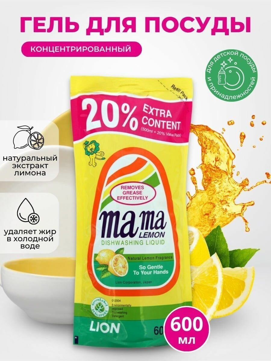 Купить MAMA LION Концентрированное средство для мытья посуды Lemon сменный блок, 0.6 л