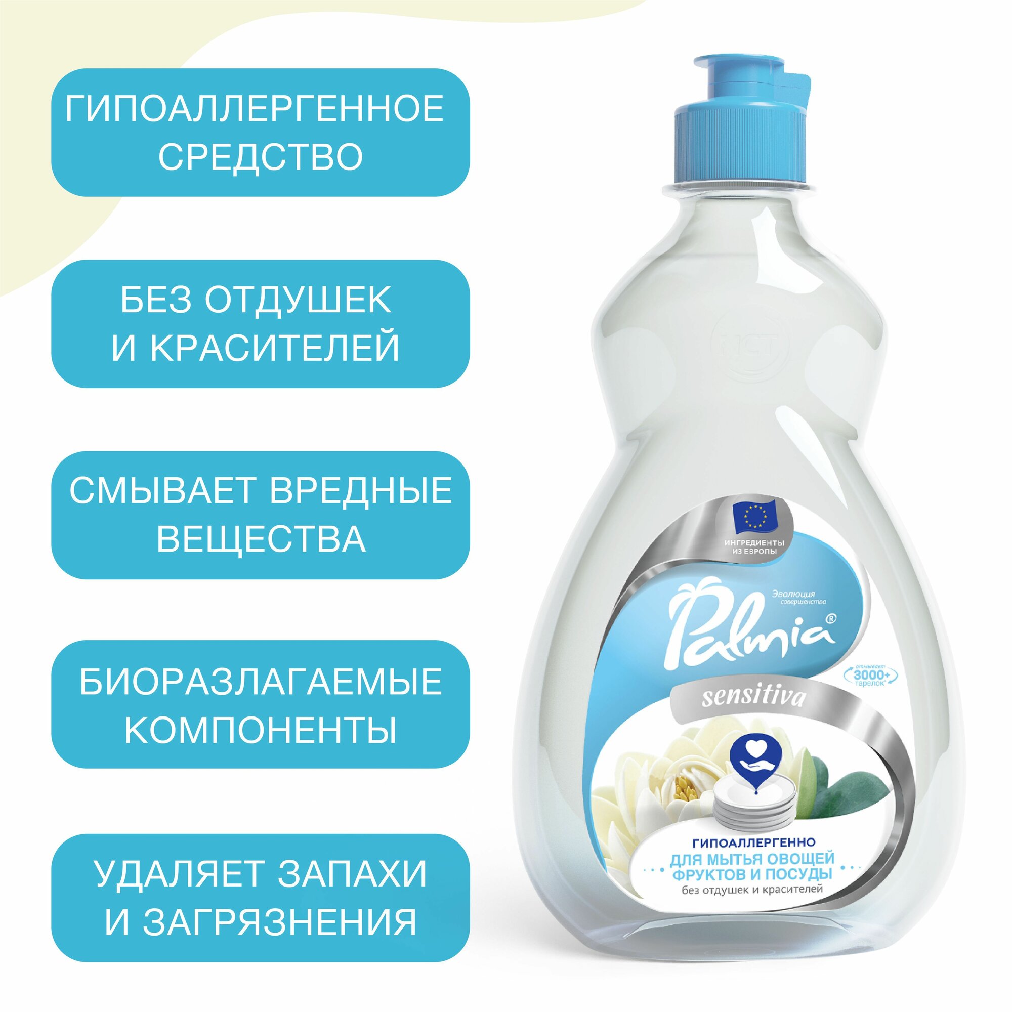 Palmia Sensitiva гипоаллергенное средство для мытья посуды. овощей и фруктов (бутылка) 500мл.