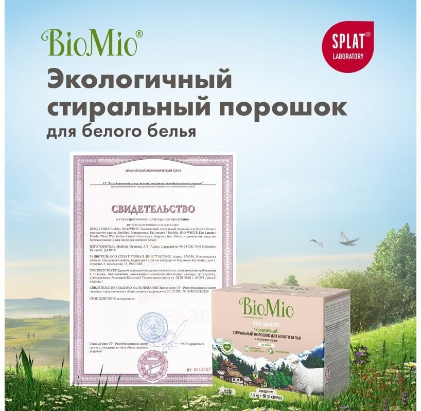 Стиральный порошок BioMio BIO-WHITE с экстрактом хлопка, 1.5 кг