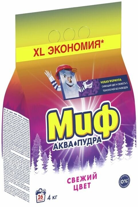 Стиральный порошок Миф Аквапудра Свежий цвет, автомат, 4 кг