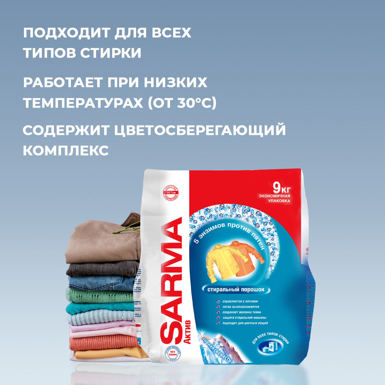 Стиральный порошок SARMA Актив Горная свежесть, 9 кг