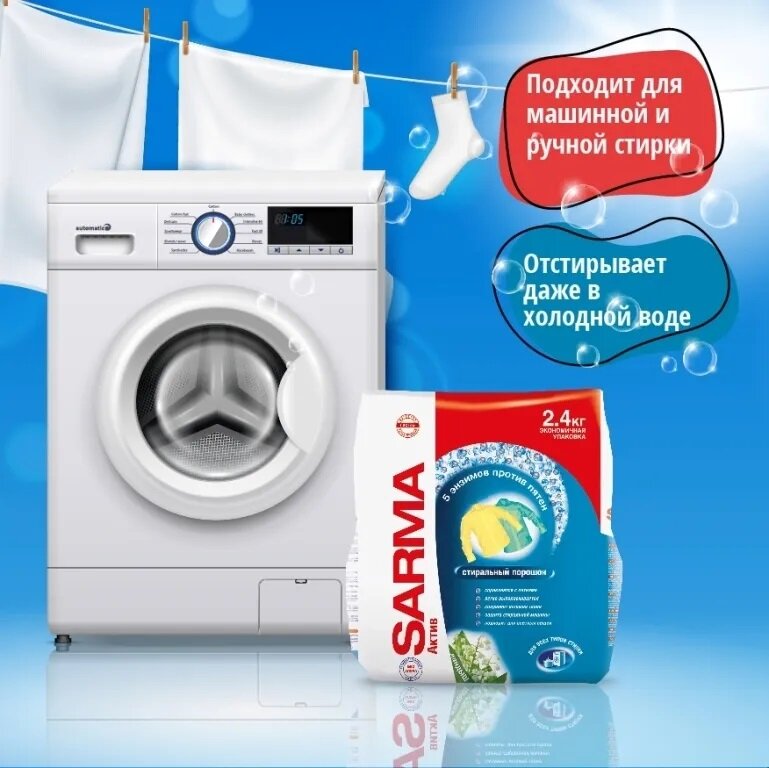 СохранитьSARMA Стиральный порошок Актив Универсальный Ландыш 2,4 кг интересное: