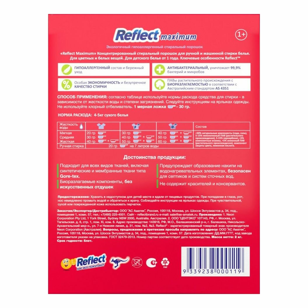 Стиральный порошок Reflect Maximum, 2 кг, для цветных тканей, для синтетических тканей 2 шт