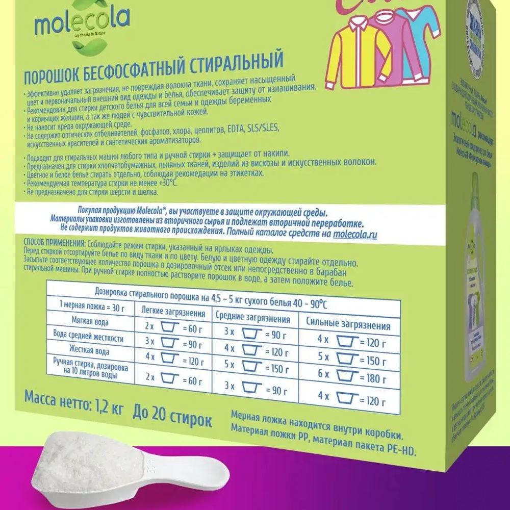 Molecola Стиральный порошок , для цветного белья, с растительными энзимами, 1,2 кг