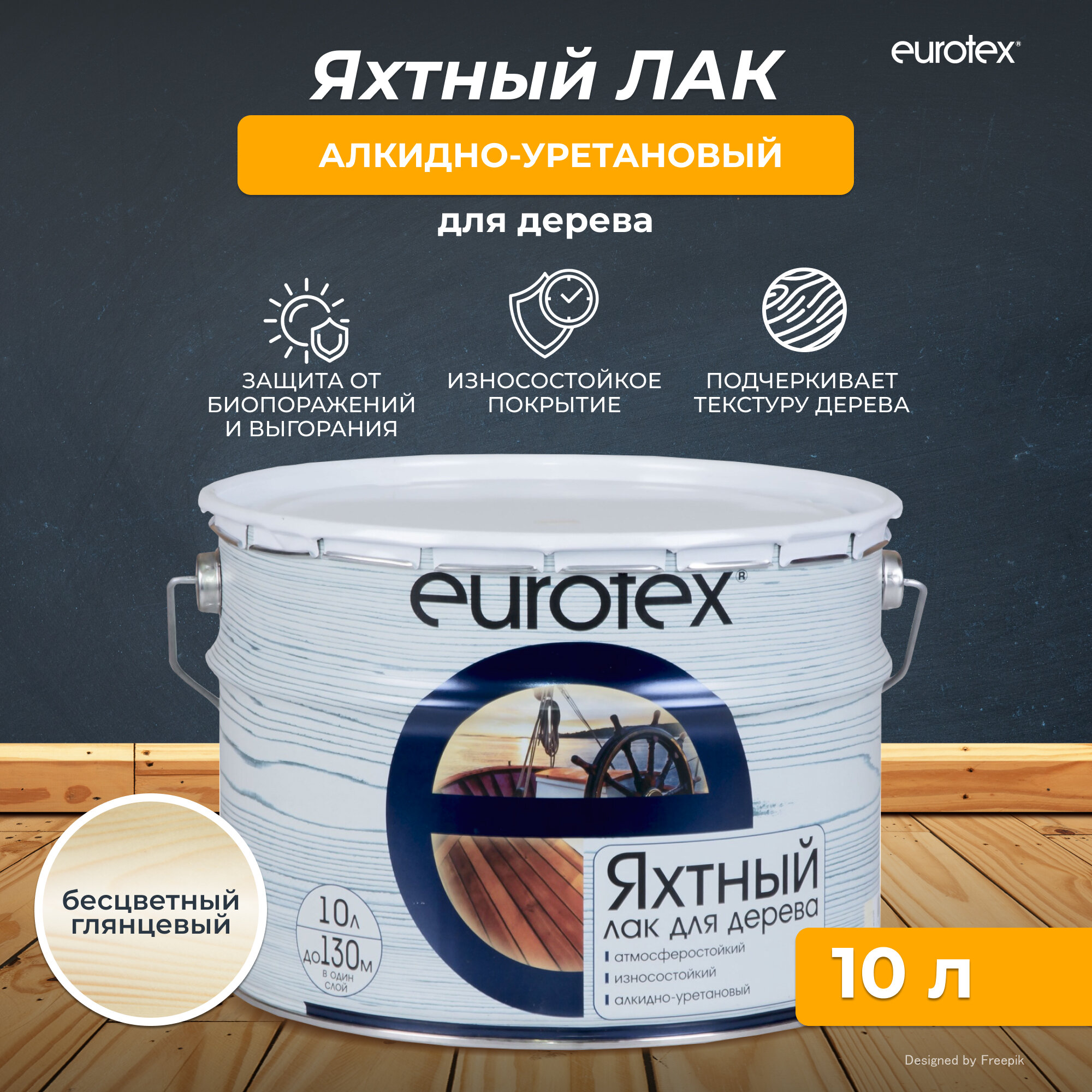 Купить Лак Яхтный Eurotex 10л Алкидно-Уретановый Глянцевый для Внутренних и Наружных Работ / Евротекс.