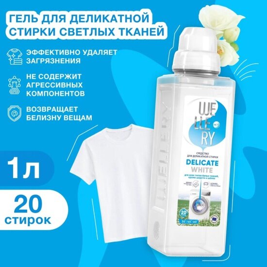 Гель для стирки Wellery Delicate white, 1 л, бутылка