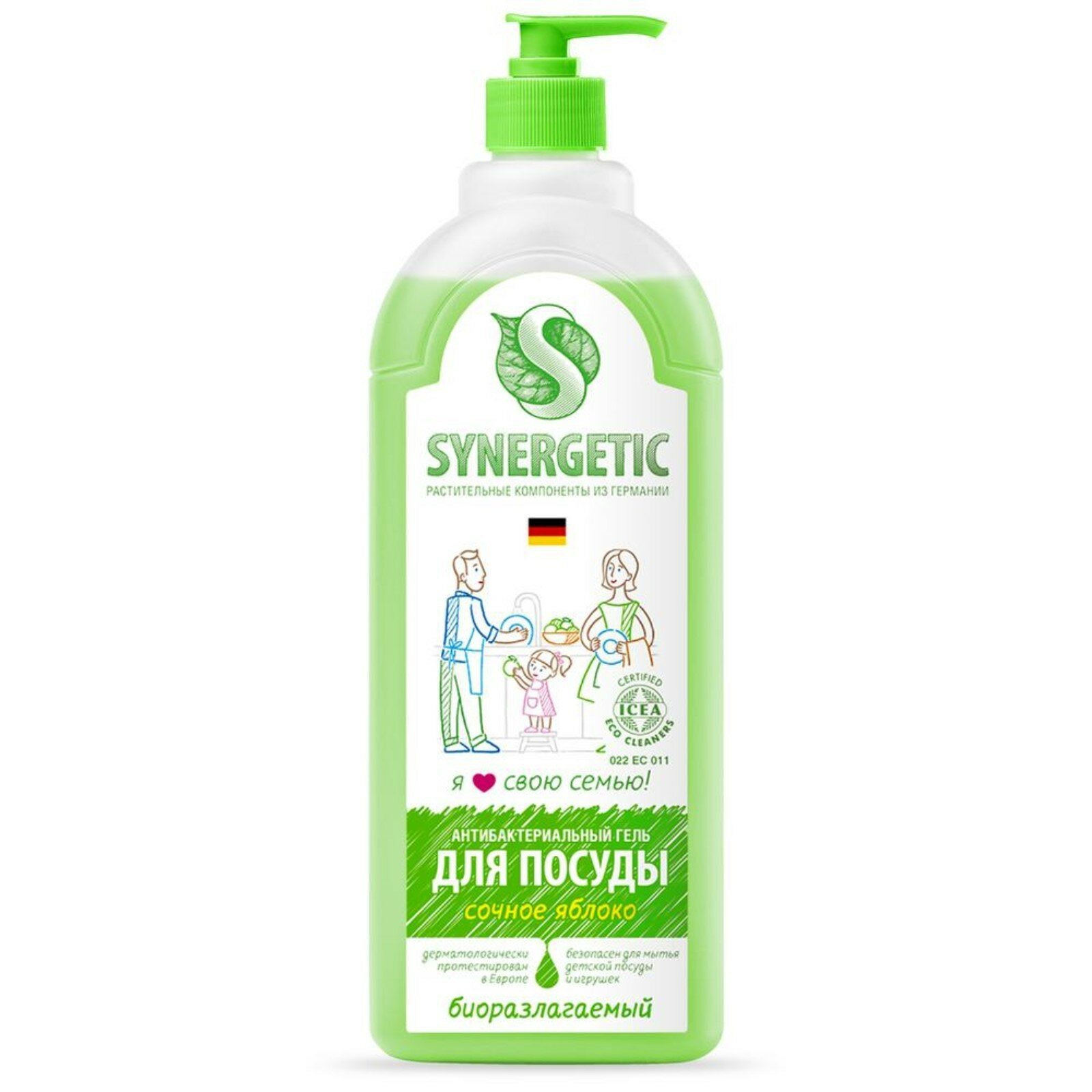 Synergetic Антибактериальный гель для мытья посуды Сочное яблоко с дозатором, 0.5 л