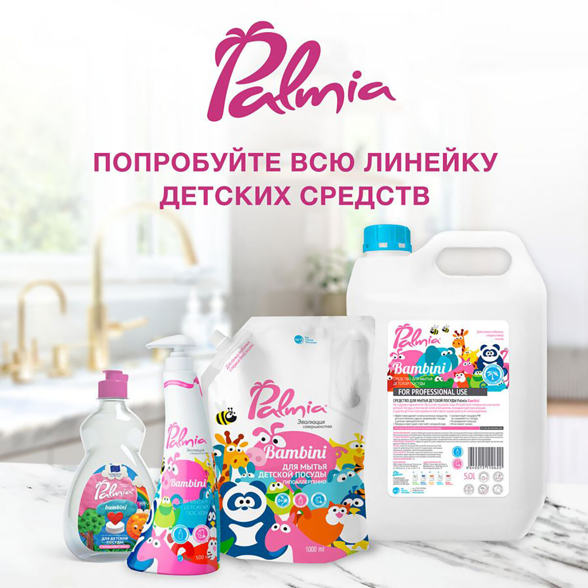 Palmia Средство для мытья посуды Bambini с дозатором, 0.5 л