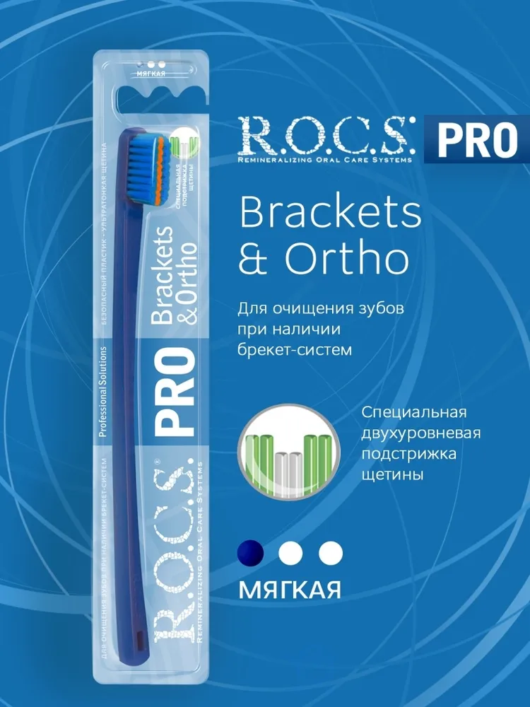 Зубная щетка R.O.C.S. PRO Brackets & Ortho синяя, мягкая