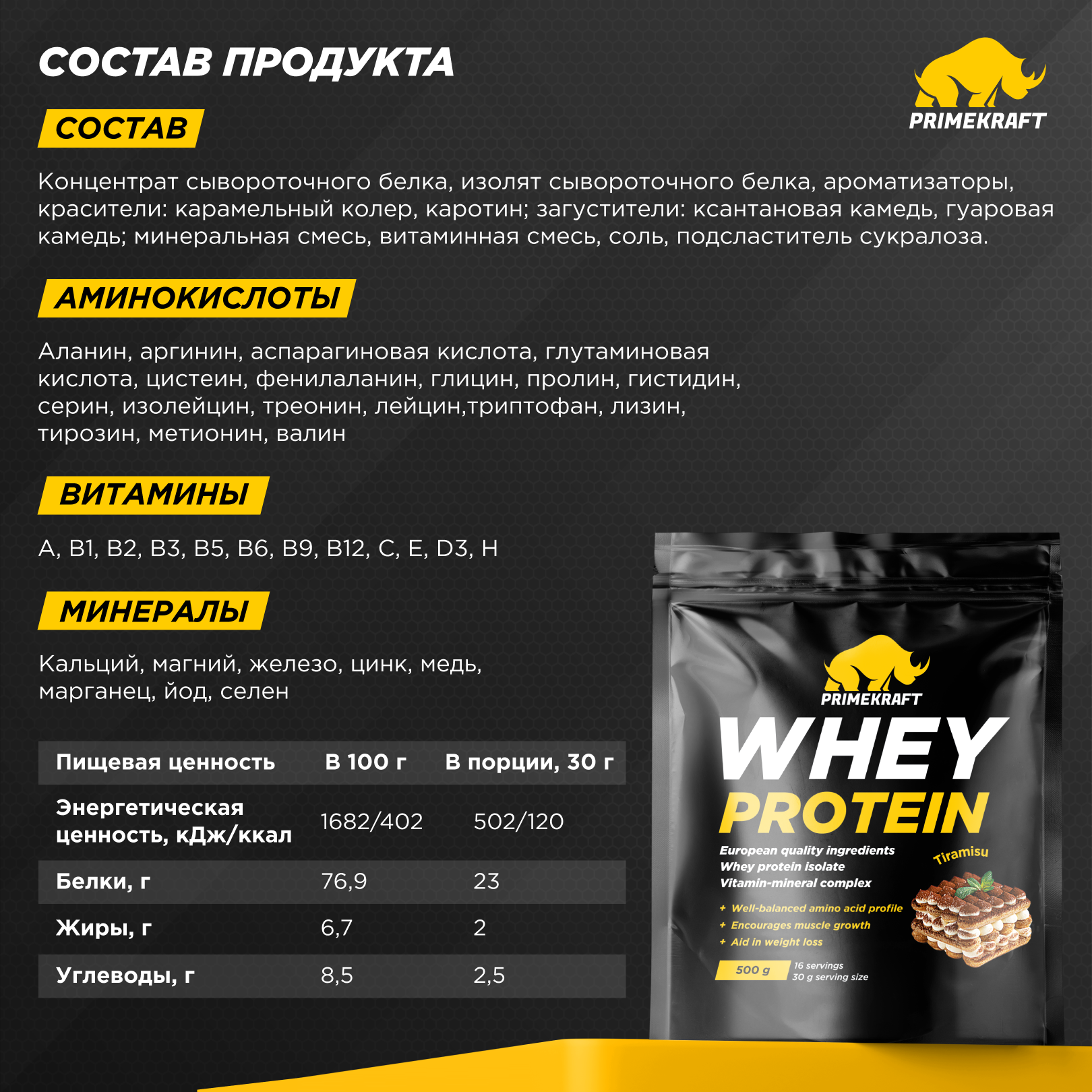 Купить Протеин сывороточный PRIMEKRAFT Whey Protein Тирамису 500 г / 16 порций