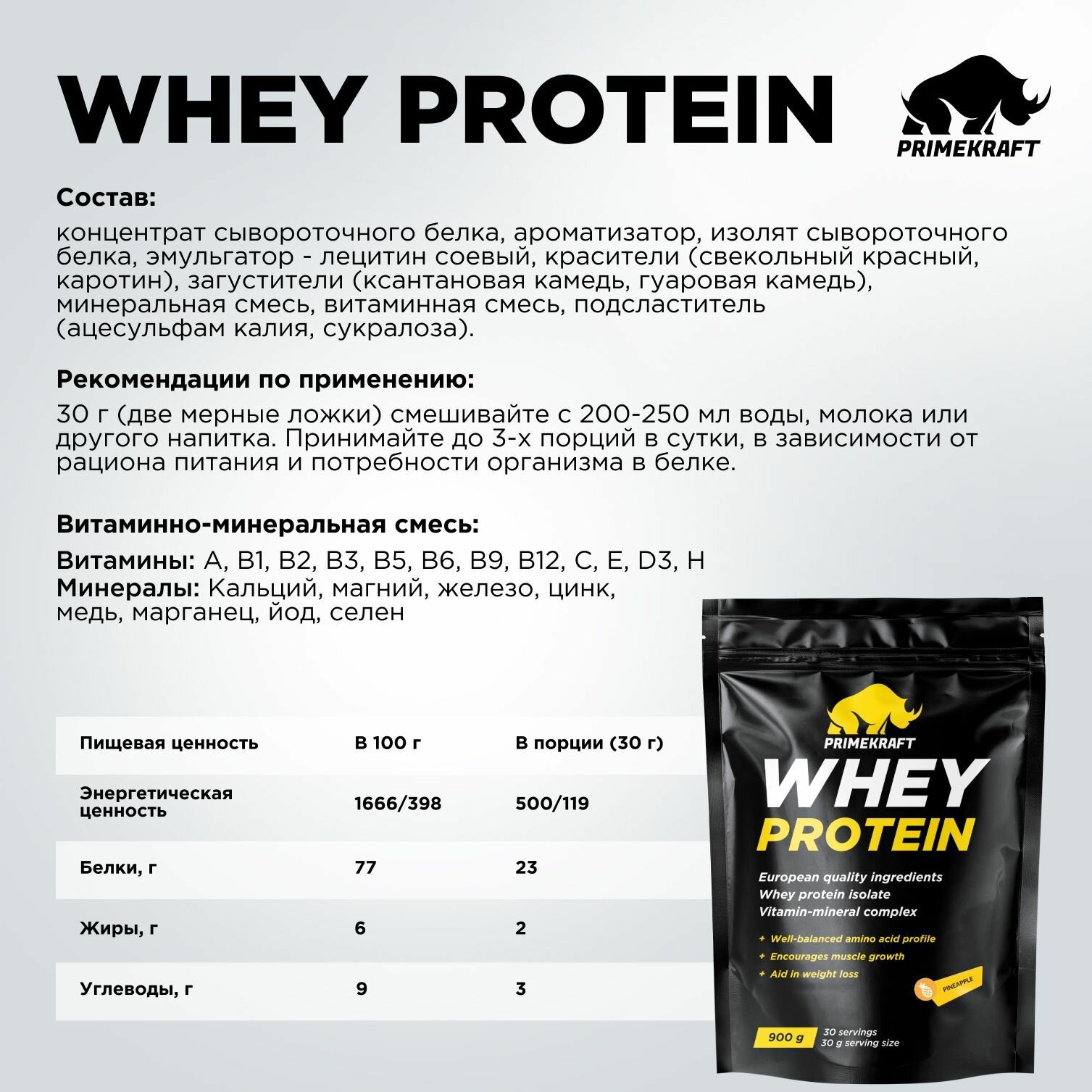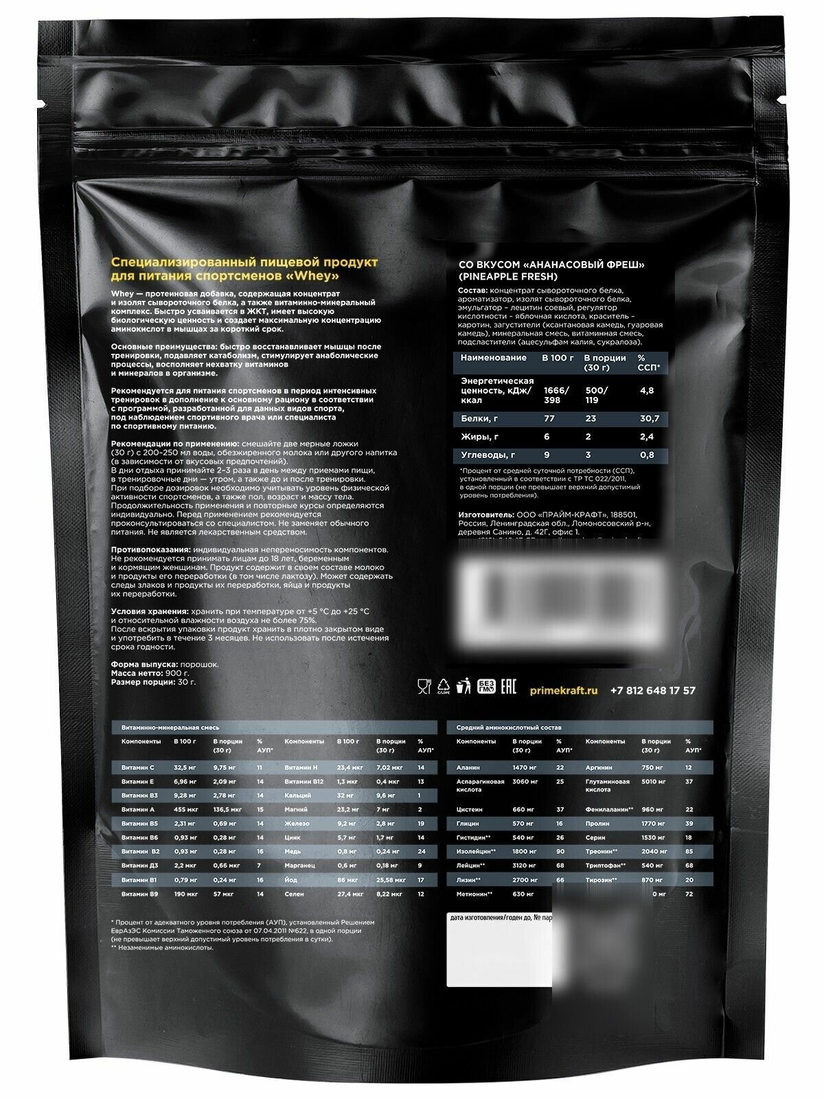 Сывороточный протеин Whey Protein Prime Kraft 900 г 30 (Ананасовый фреш)