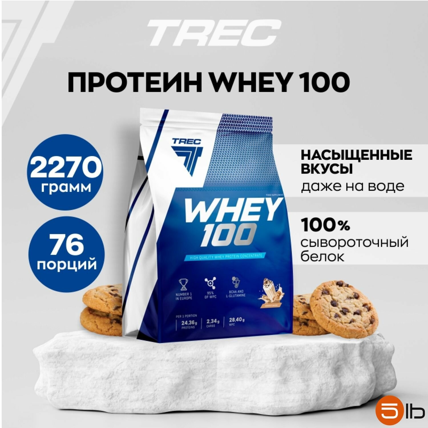 Trec Nutrition Протеин Trec Nutrition Whey 100, 2270 г, вкус: печенье