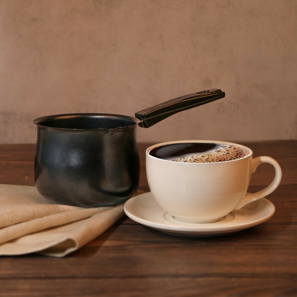 Кофеварка (турка) из углеродистой стали с антипригарным покрытием объем 600мл. Подходит для всех типов плит ( включая индукционные)