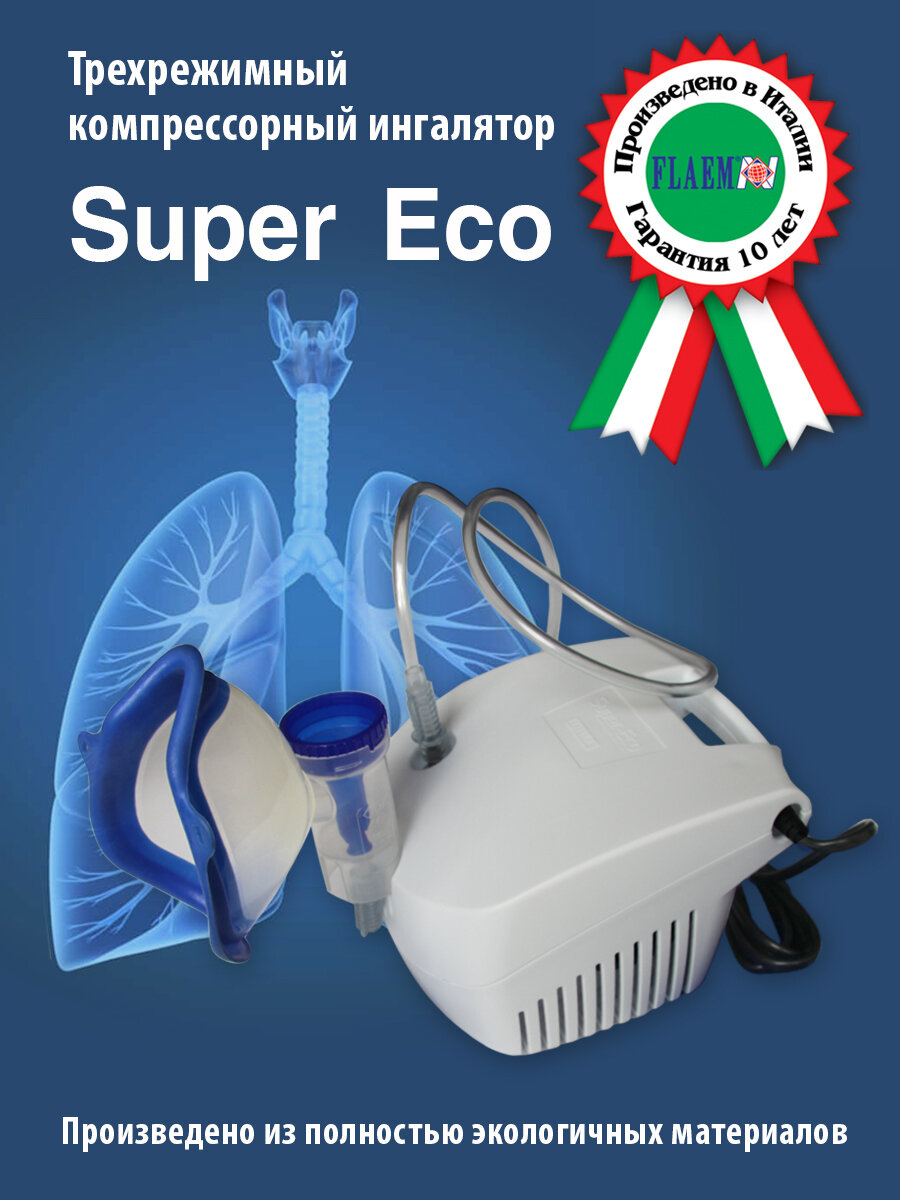 Компрессорный трёхрежимный ингалятор Супер-Эко (Super-Eco) итальянской компании Flaem Nuova (Флаем Нуова)