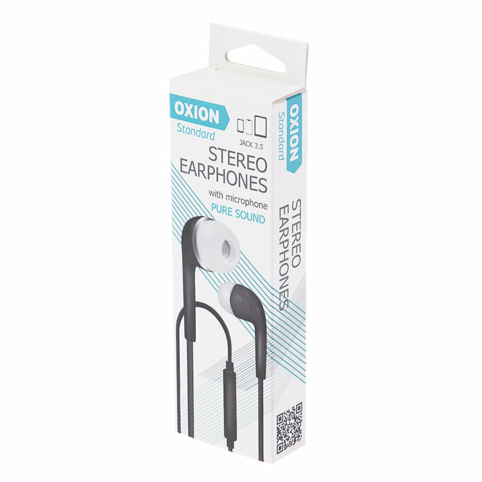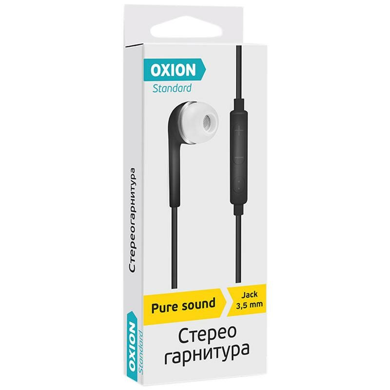 Наушники проводные - стерео гарнитура OXION, черная внутриканальная, шнур 1м, 1 шт.