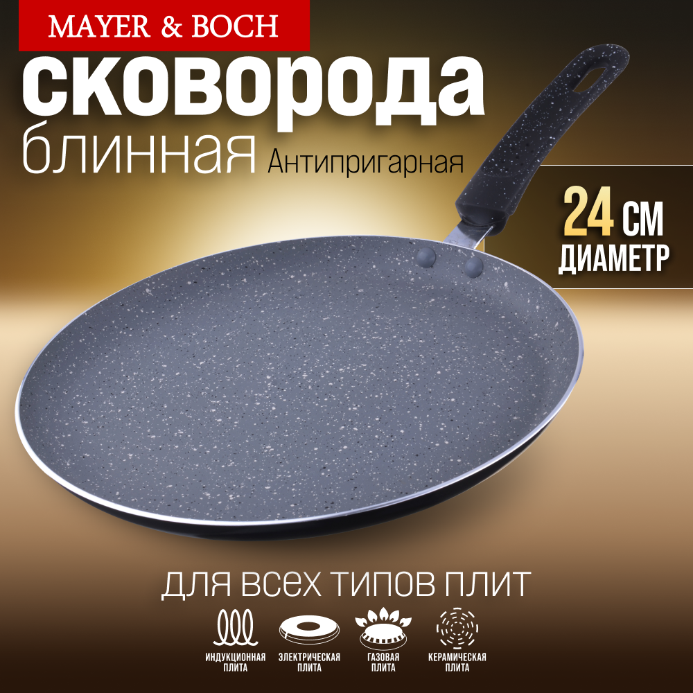 Купить Сковорода для блинов Mayer&Boch / Майер&Бош 25690 алюминий с мраморным антипригарным покрытием, диаметр 24см / блинница для всех видов плит